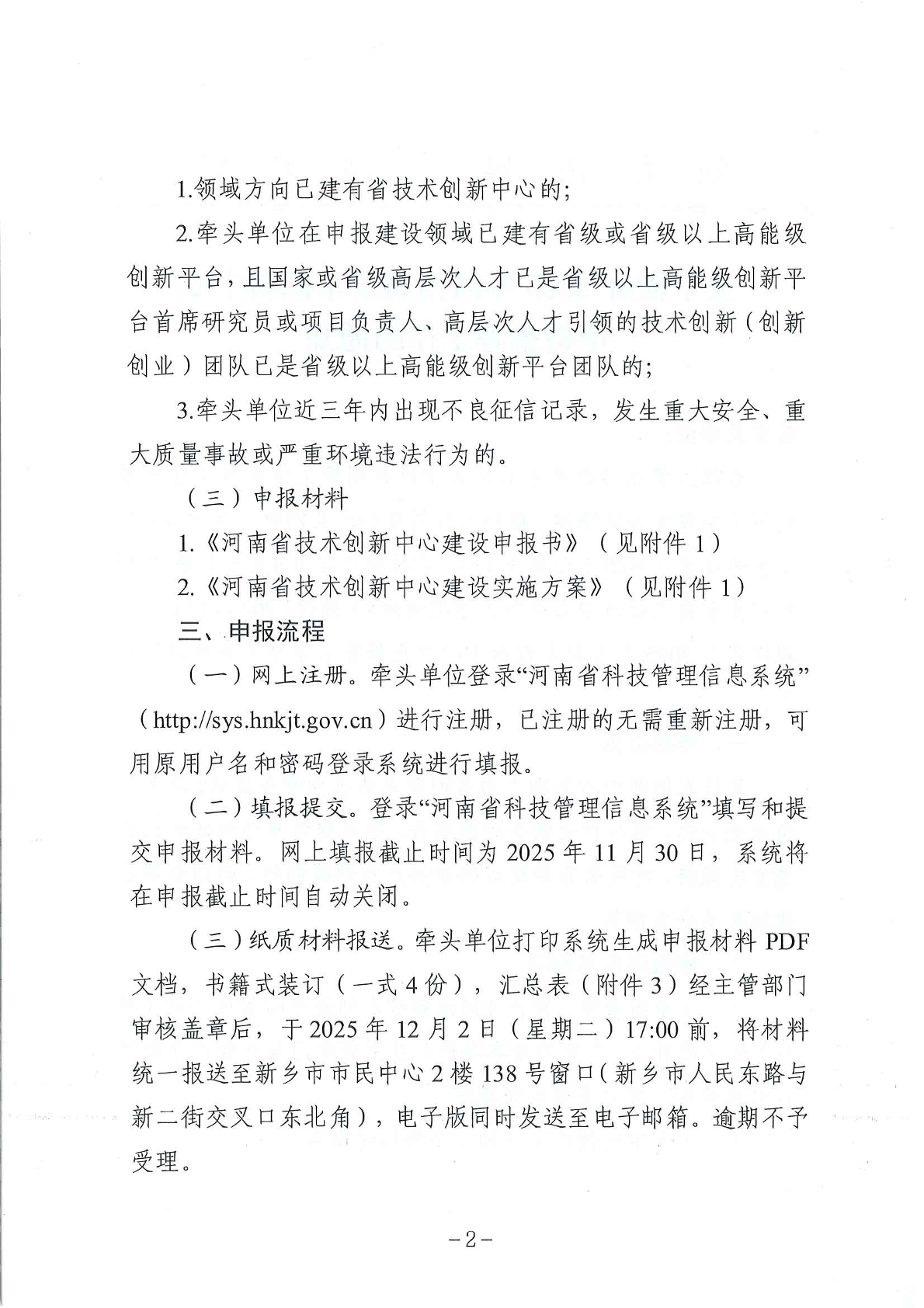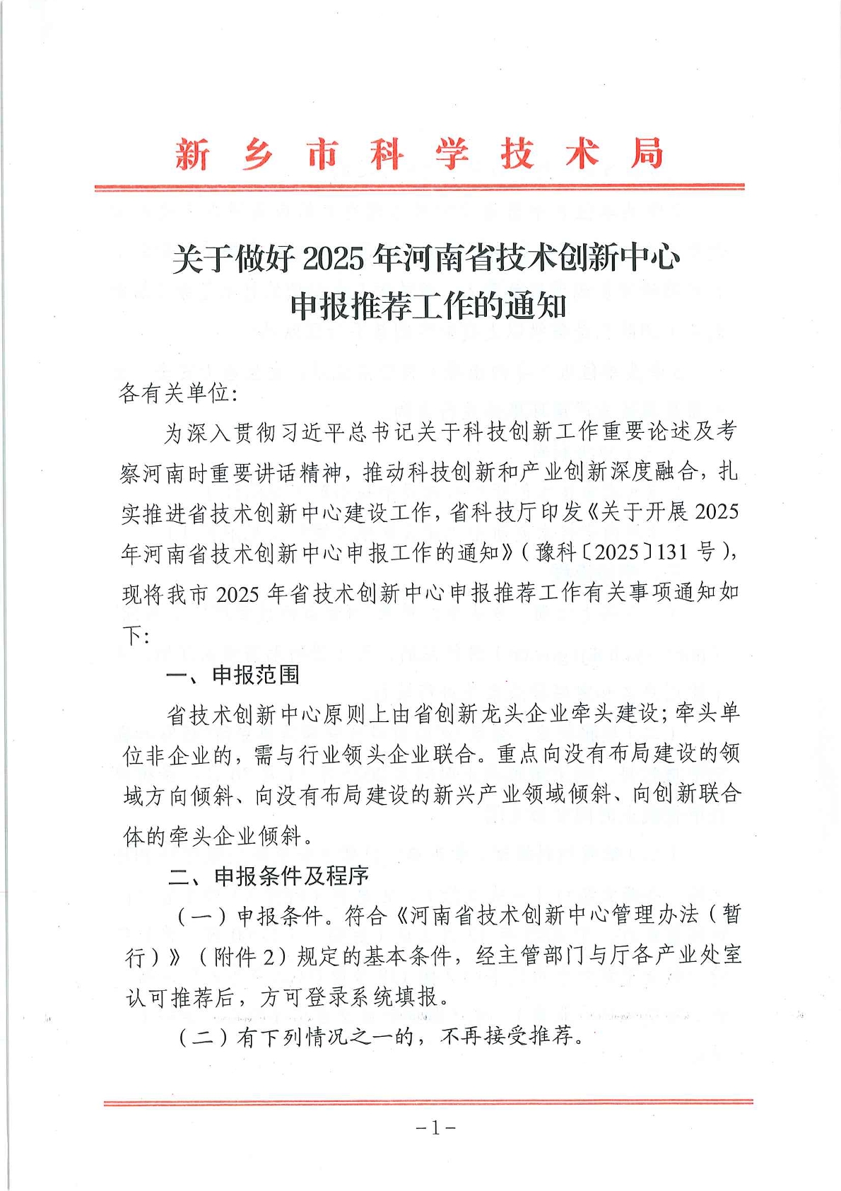 关于做好2025年河南省技术创新中心申报推荐工作的通知