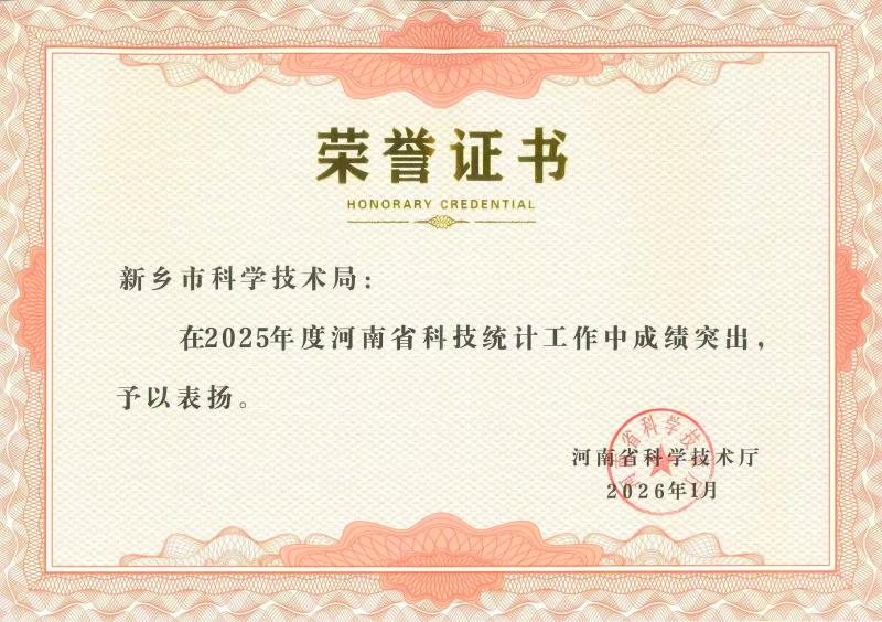 新乡市科学技术局荣获2025年度河南省科技统计工作先进集体称号