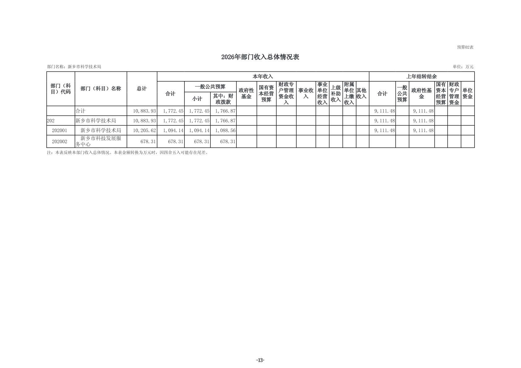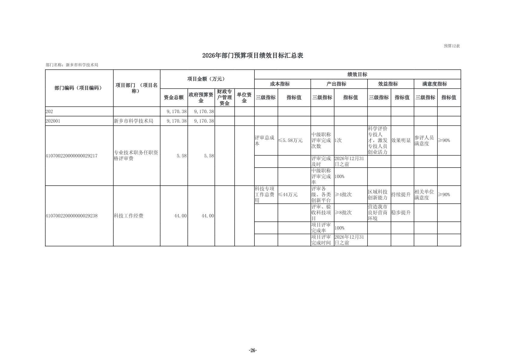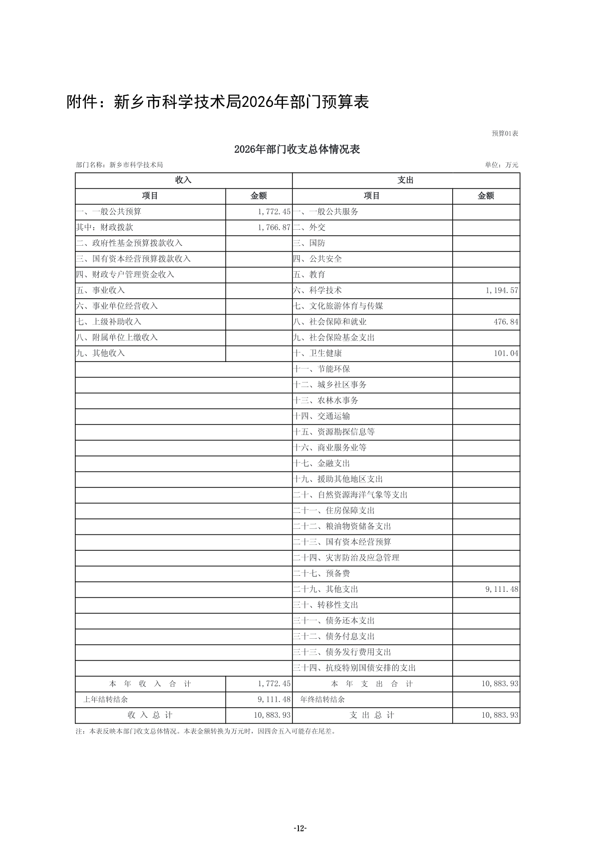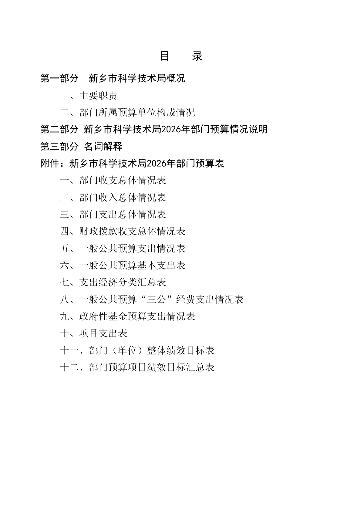 2026年度新乡市科学技术局部门预算公开
