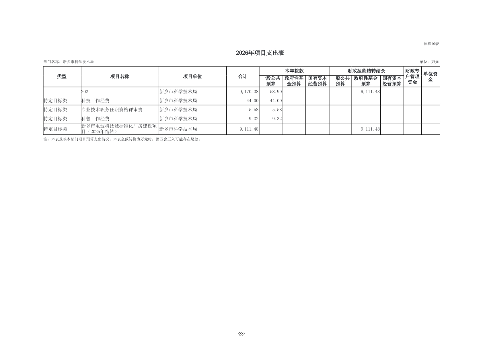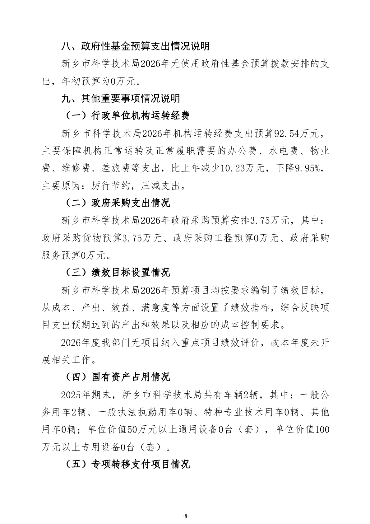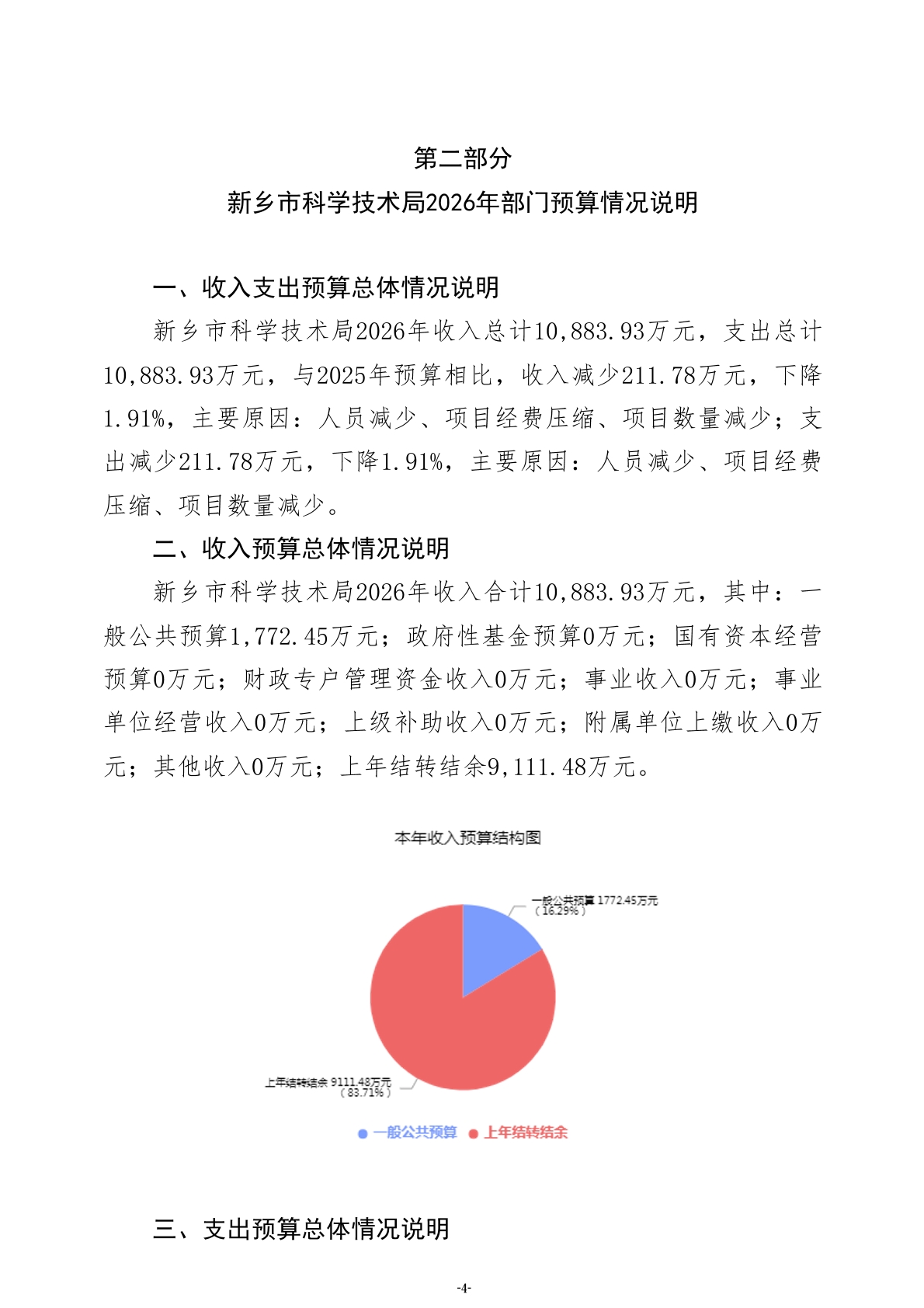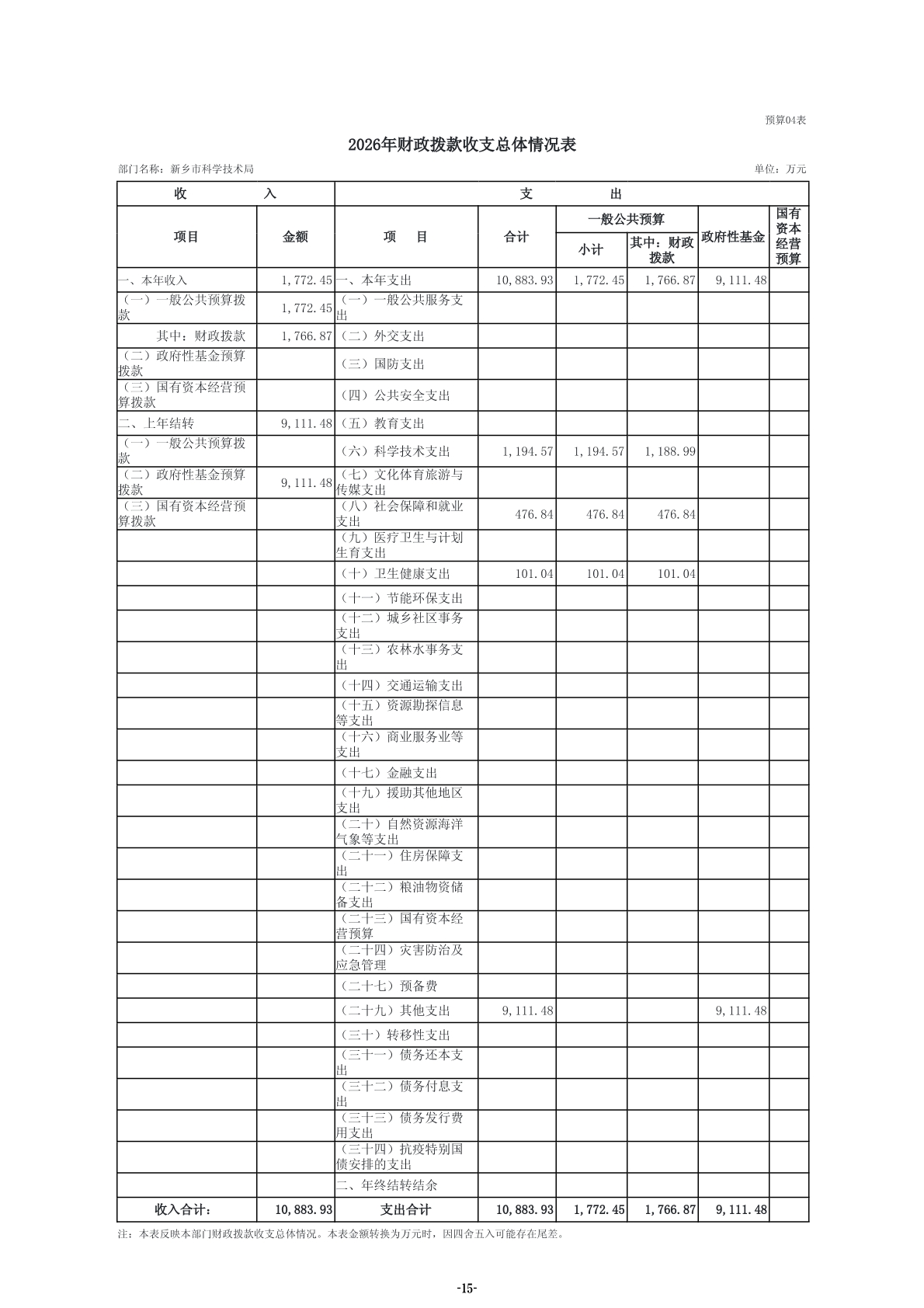 2026年度新乡市科学技术局部门预算公开