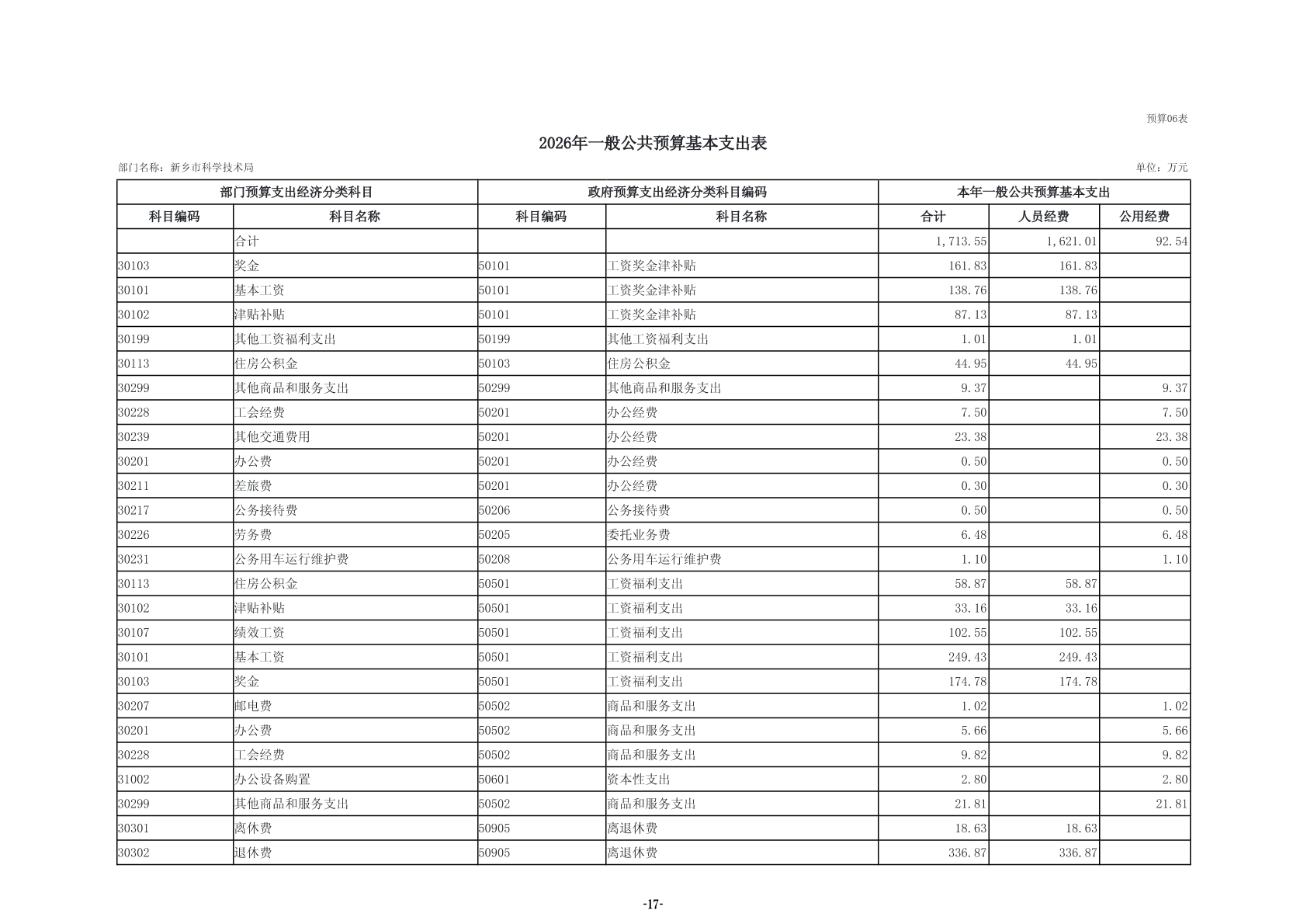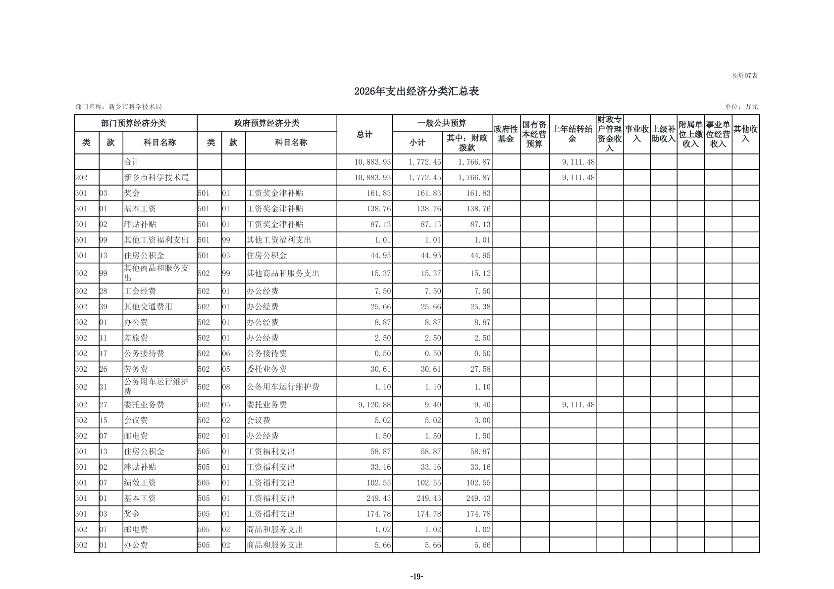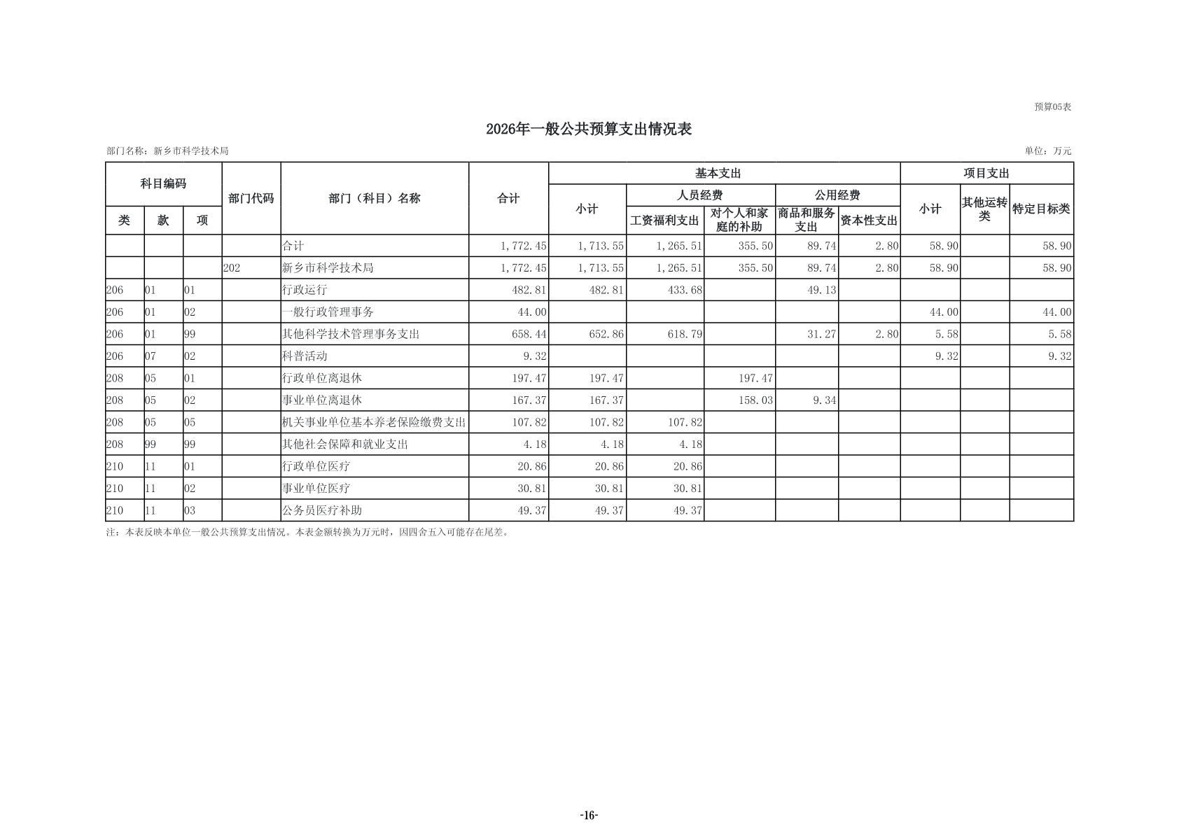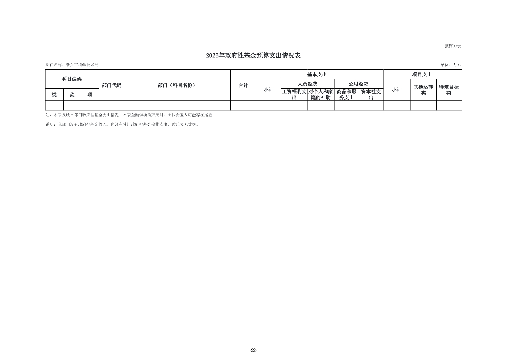 2026年度新乡市科学技术局部门预算公开