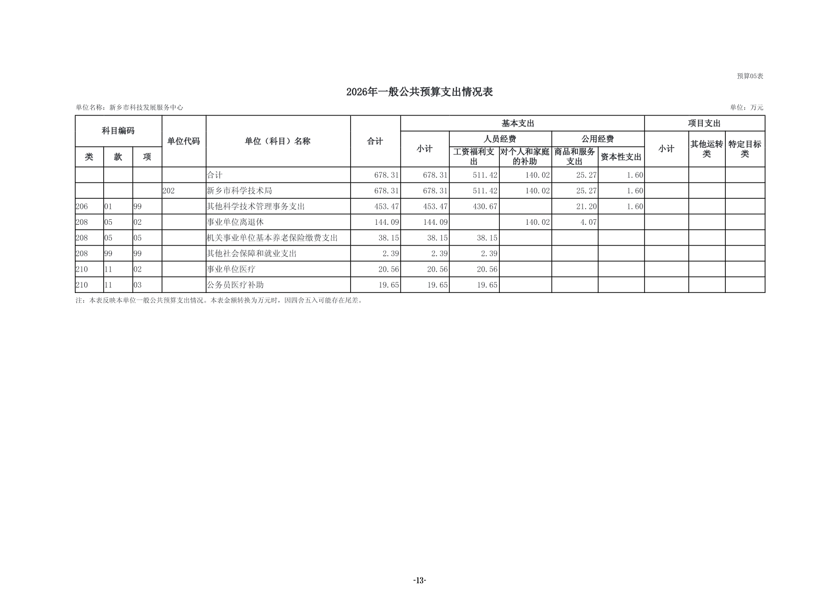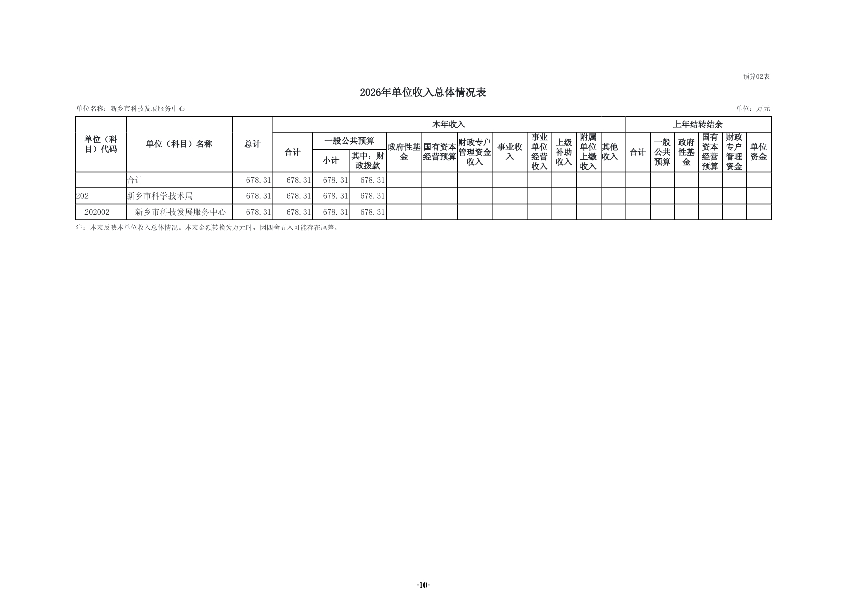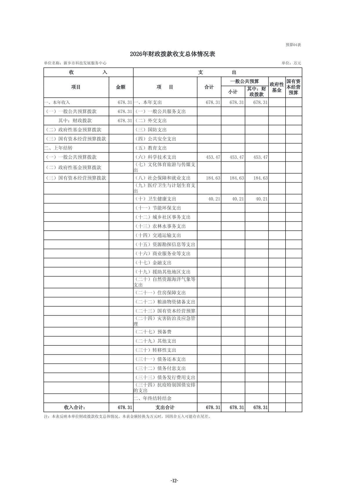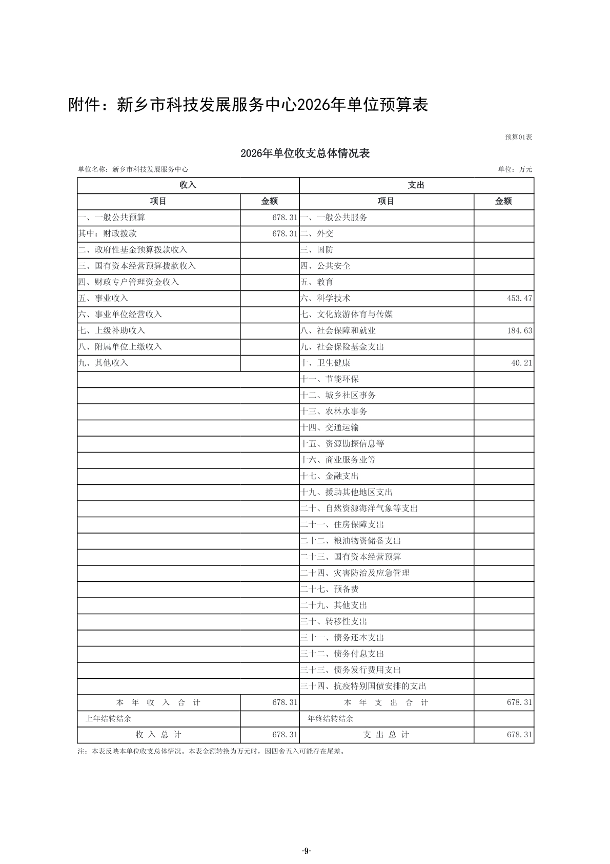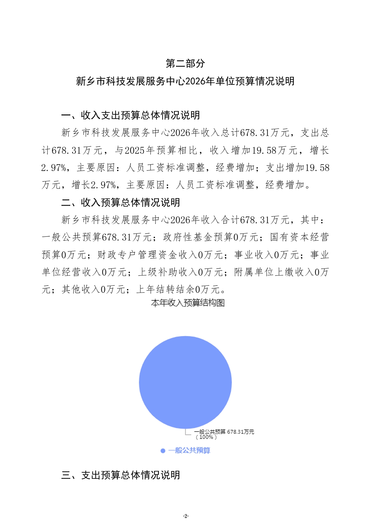 2026年度新乡市科技发展服务中心单位预算公开
